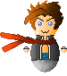 Hello, Reader ^^! Back again with pixel art ^^! This time I made an art based on peanut shape again. This time is character Chain Flamberg which belongs to shikami. The tool used is Ms Paint to create the base, Game Maker 8 Sprite Editor to add transparency and pose; and GIMP to implement animation. The character is enjoying the wind and keeps hopping while his scarf is being blown by the wind. Okay, that's all I can say. Thank you for reading ^^!